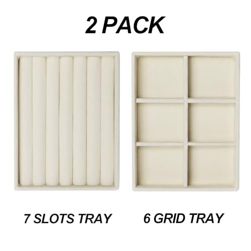 首飾收納盒 首飾抽屜收納盤 耳環戒指項鍊收納展示盒(米色,戒指+6格收納盤)
