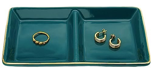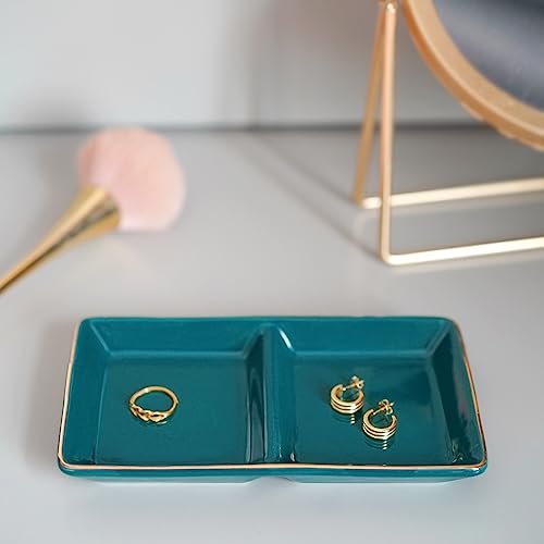 陶瓷首飾盤托盤 兩格戒指盤 裝飾小物收納盤 適合戒指、耳環、鑰匙 生日聖誕禮物 綠色
