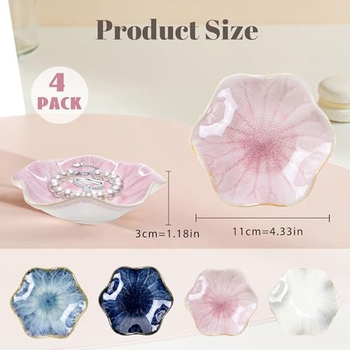 陶瓷首飾盤戒指碟 4.33吋鑰匙碗陶瓷盤4件套 小物收納盤 首飾盤 家居裝飾 送女友、女兒、母親禮物 母親節禮物