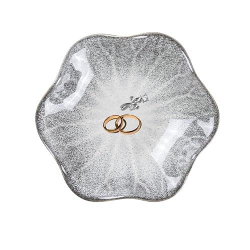 陶瓷小物收納盤 戒指盤 裝飾首飾盤 耳環裝飾盤 戒指首飾托盤 鑰匙碗 小物托盤 女士耳環收納盤(火山灰色)