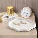 女士陶瓷首飾碟 首飾盤 小物收納碟 不規則雲朵形陶瓷盤 手錶鑰匙盤 戒指托盤 母親節/聖誕節/感恩節/生日禮物(白色)