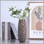 12吋陶瓷仿古花瓶,鄉村復古風格家居擺設,獨特造型餐桌中央擺件,大號客廳/桌面/置物架花器,棕色幾何圖案,仿青銅色 數量