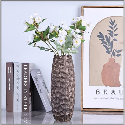 12吋陶瓷仿古花瓶,鄉村復古風格家居擺設,獨特造型餐桌中央擺件,大號客廳/桌面/置物架花器,棕色幾何圖案,仿青銅色